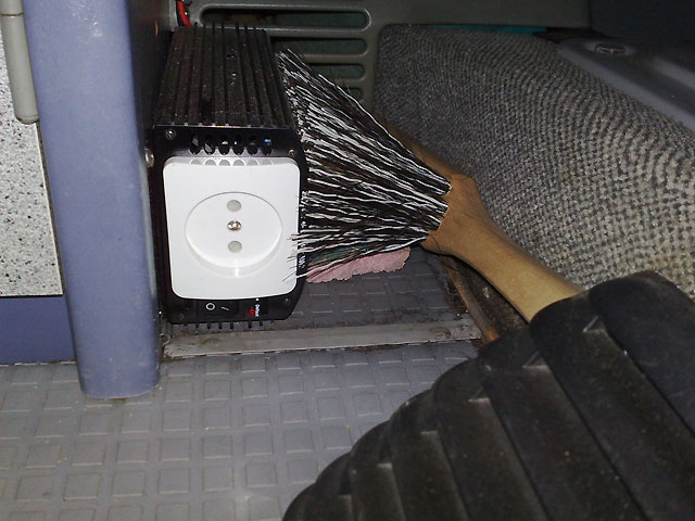 Installation d'un convertisseur 12/220V, optimisation du rangement batterie moteur...