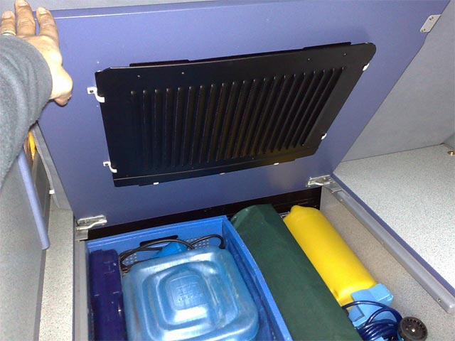 Installation d'un convertisseur 12/220V, optimisation du rangement batterie moteur...
