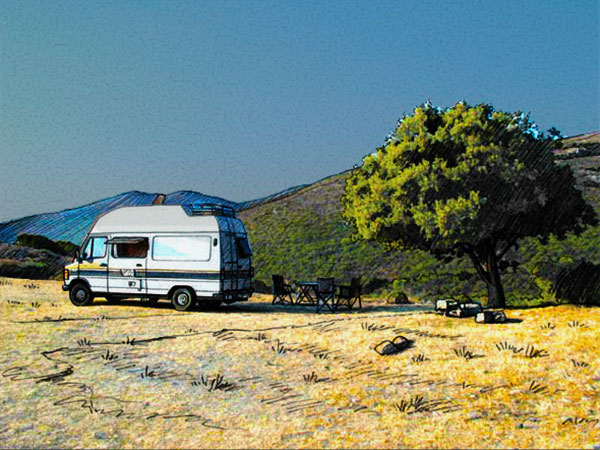 Comme nous avons fait l'acquisition de notre California fin novembre 2007, il est bien clair que nous avons encore peu de récits de vacances à proposer. De l'époque du VW T2 baywindow, il faudrait faire un peu de spéléo pour retrouver quelques photos papier (pas de numérique à l'époque). Quant à la période James Cook, avec lui nous avons effectué deux voyages : un mini en Camargue et un autre de 15 jours, en Corse.